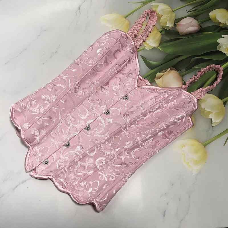 コルセット レディース 肩紐付き ビスチェ ボーン入り 編み上げ 補正下着 ウエストニッパー スタイルアップ 花柄 花びらデザイン フレア裾 ショート丈 30cm 5段階調整ホック