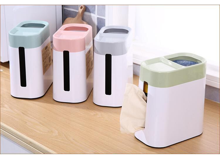 ダストボックス ティッシュケース一体型 多機能 北欧 無地 シンプル 卓上 リビング オフィス 洗面所 寝室 ピンク ブルー グリーン グレー