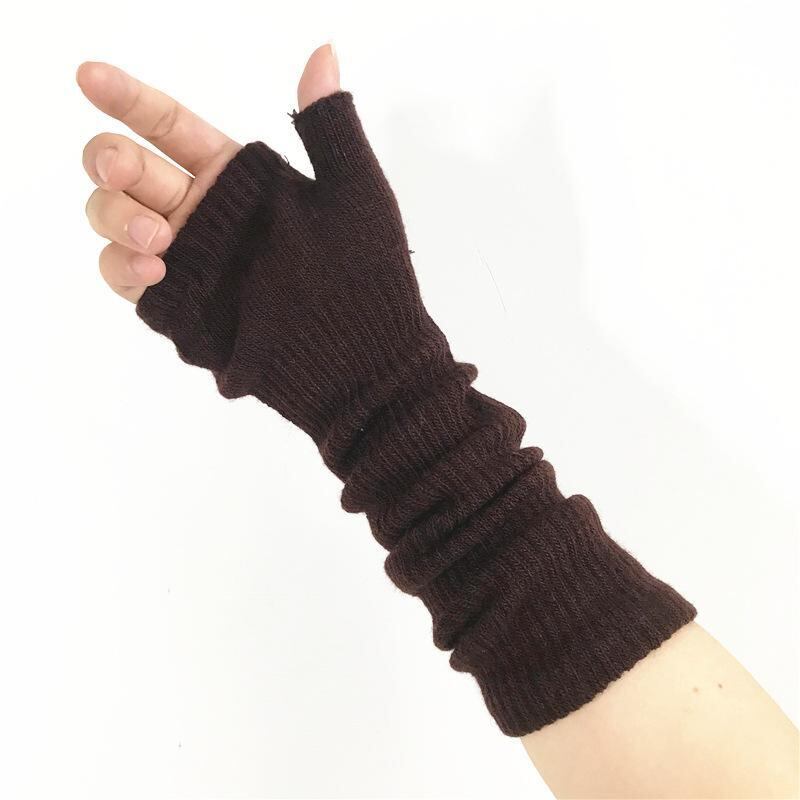 アームウォーマー 男女兼用 アクリル ニット アームカバー 秋冬 防寒 保温 指穴 サムホール 無地 日系 ダーク系 カジュアル シンプル 普段使い