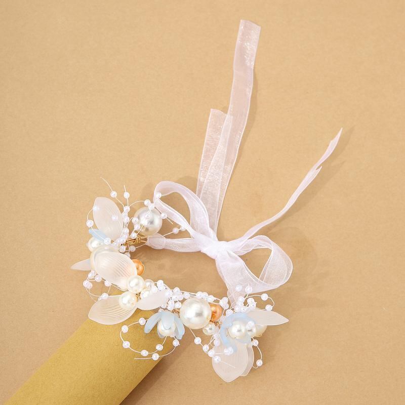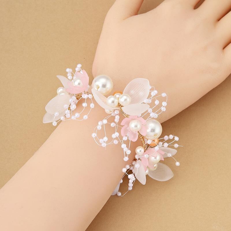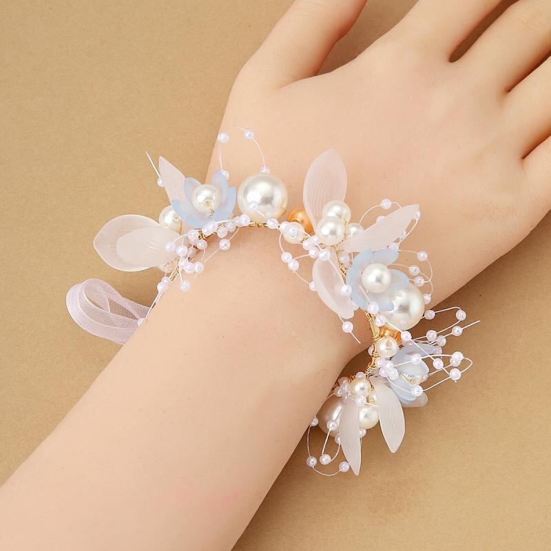 リストブーケ レディース 華やか エレガント 韓国風 ブルー ホワイト ピンク 花飾り パール ブライダル 結婚式 披露宴 二次会 パーティー 発表会 フォーマル ブレスレット コサージュ