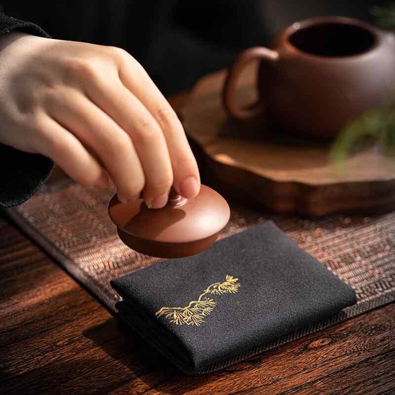 茶巾 和風 両面フリース マイクロファイバー 吸水 速乾 手描き 正方形 茶器拭き 茶道用 高吸水性 清潔 茶布 茶フキン 茶マット 茶コースター お茶会 来客用 普段使い