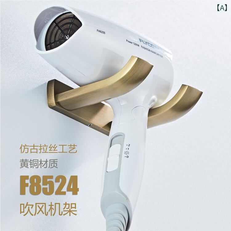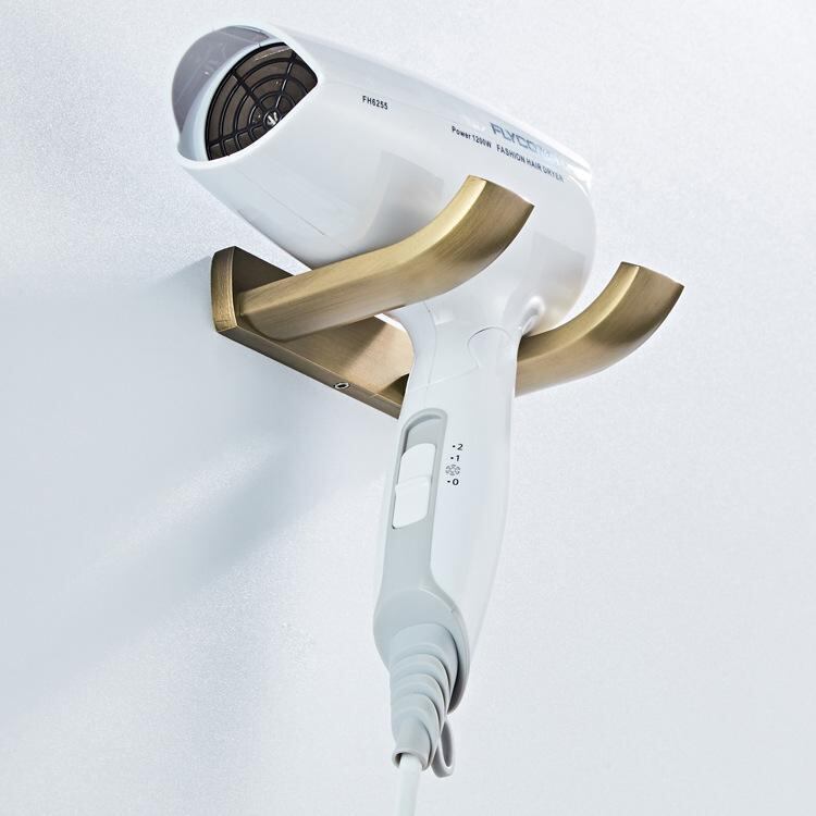 ヘアドライヤーホルダー 壁掛け 収納 真鍮 黄銅製 アンティーク調 古銅色 ブロンズ レトロ シンプル おしゃれ 洗面所 バスルーム スタイリッシュ