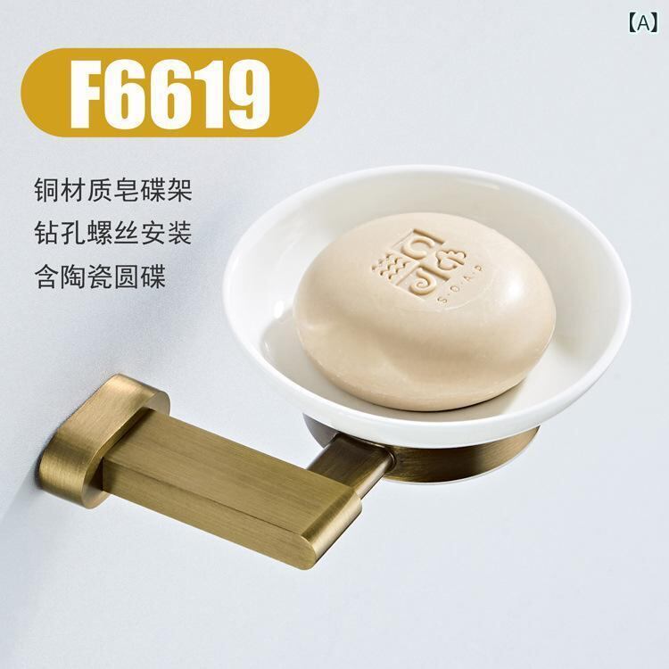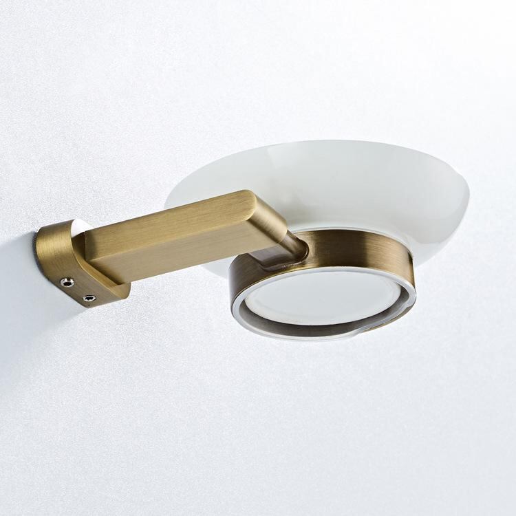 ソープディッシュ バスルーム用 壁掛け式 ウォールマウント シンプル モダン 真鍮製 黄銅 楕円形ベース オーバル型台座 アンティークブロンズ 古美色 円形セラミックトレイ付き 石鹸置き