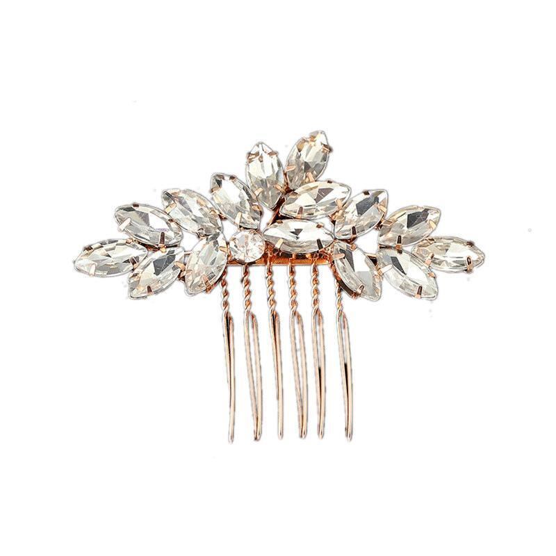 ヘアコーム レディース ゴールド オーバル マーキーズカット ジルコニア サイドコーム 髪飾り 上品 エレガント 結婚式 パーティー フォーマル