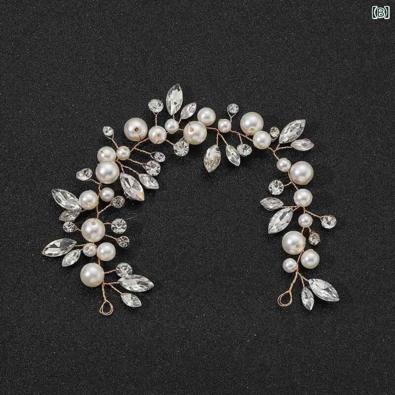 ヘッドドレス 新婦 ウェディング ブライダル 結婚式 パール パール マーキスカット ラインストーン ショートヘア チェーン シルバー ゴールド ヘアバンド 髪飾り