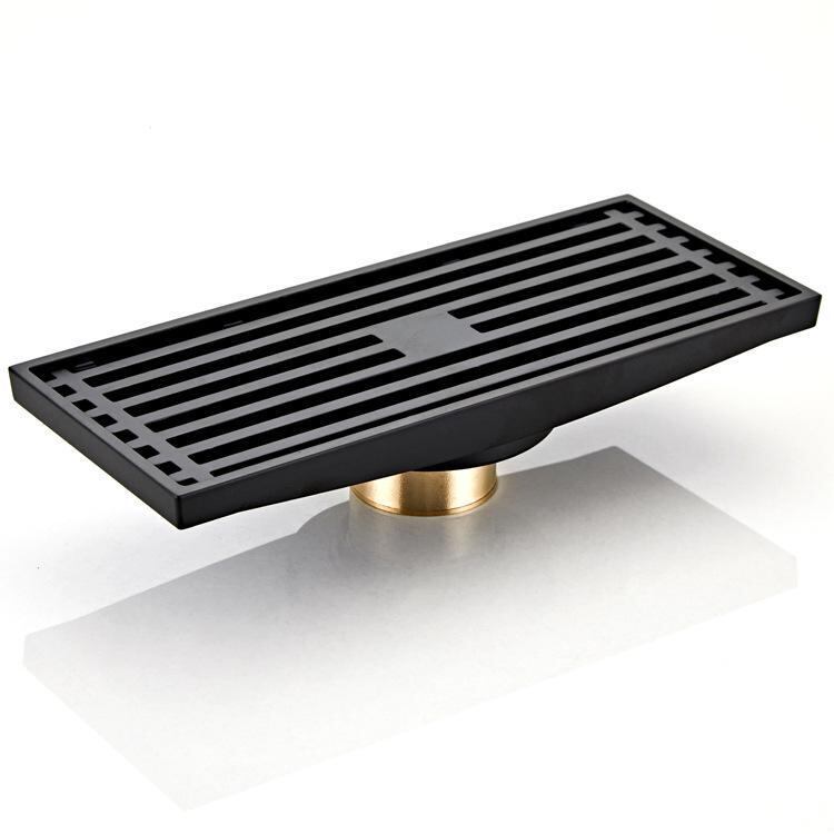 フロア排水口 排水溝 大型 20cm 長方形 ポップアップ式 T字型 真鍮製 防臭機能付き バスルーム シャワールーム用 純黒 ブラック