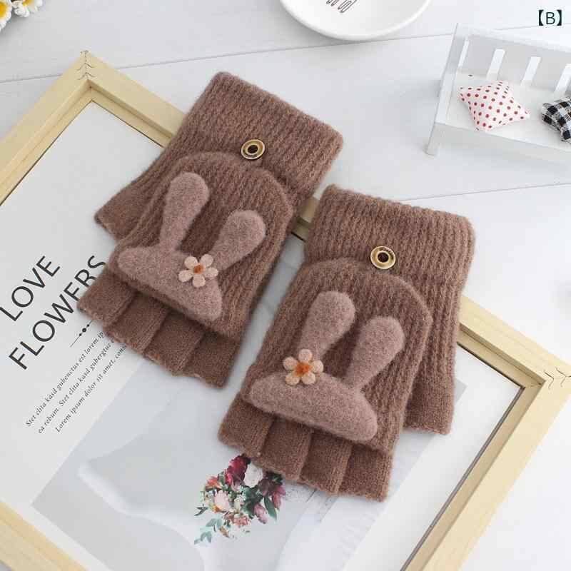 手袋 レディース 指なし 2WAY ミトンタイプ 韓国風 かわいい うさぎ ラビット 学生用 防寒 保温 あったか 秋冬 筆記 スマホ対応 グローブ ポリエステル