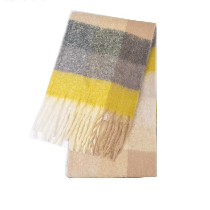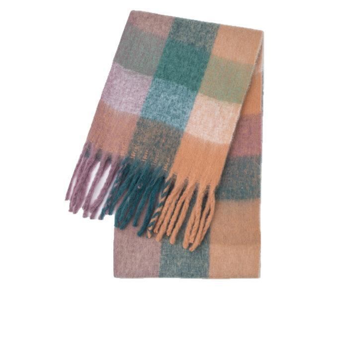 ストール レディース 秋冬 防寒 通勤 マルチカラー ストライプ チェック柄 ブークレ ポリエステル ロングフリンジ マフラー ショール
