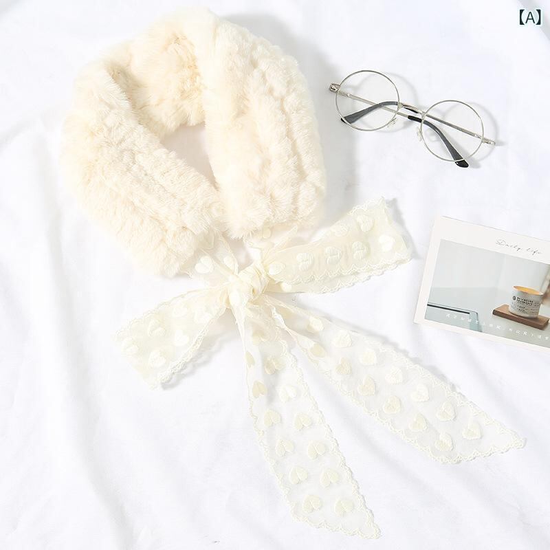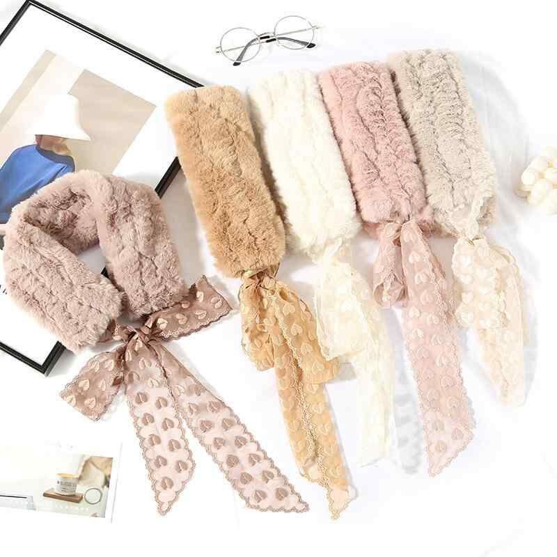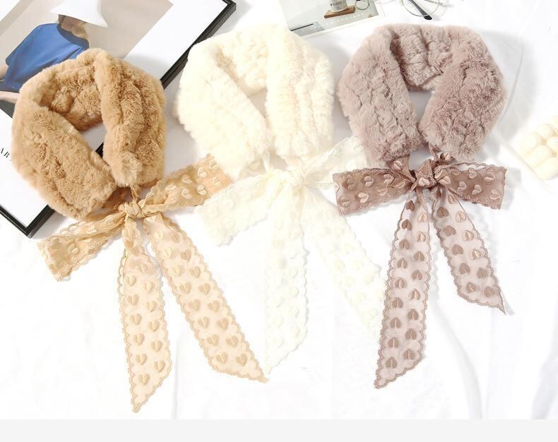 ネックウォーマー レディース 秋冬 レース レッキスラビット風 フェイクファー 裏起毛 ふわふわ もこもこ 防寒 保温 スヌード マフラー 韓国風 かわいい 女性用 ハート柄 暖かい