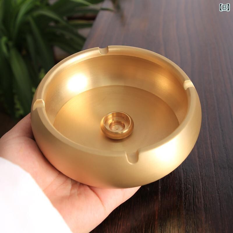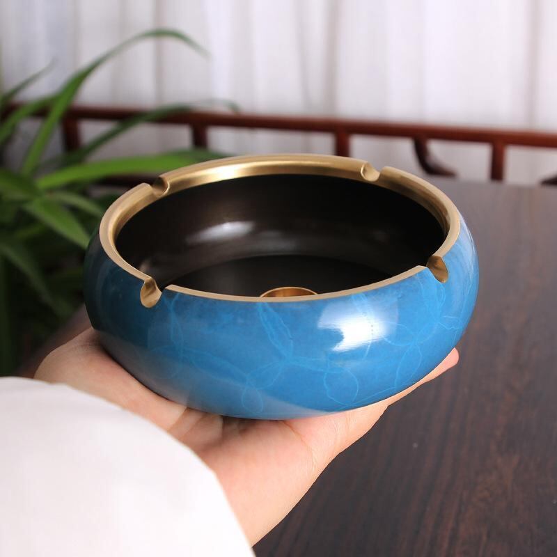 灰皿 純銅製 大型 灰飛び防止 新中華風 レトロ アンティーク調 高級感漂う リビング 卓上 インテリア 置物 おしゃれ モダン スタイリッシュ 家庭用 ブルー 黄銅色