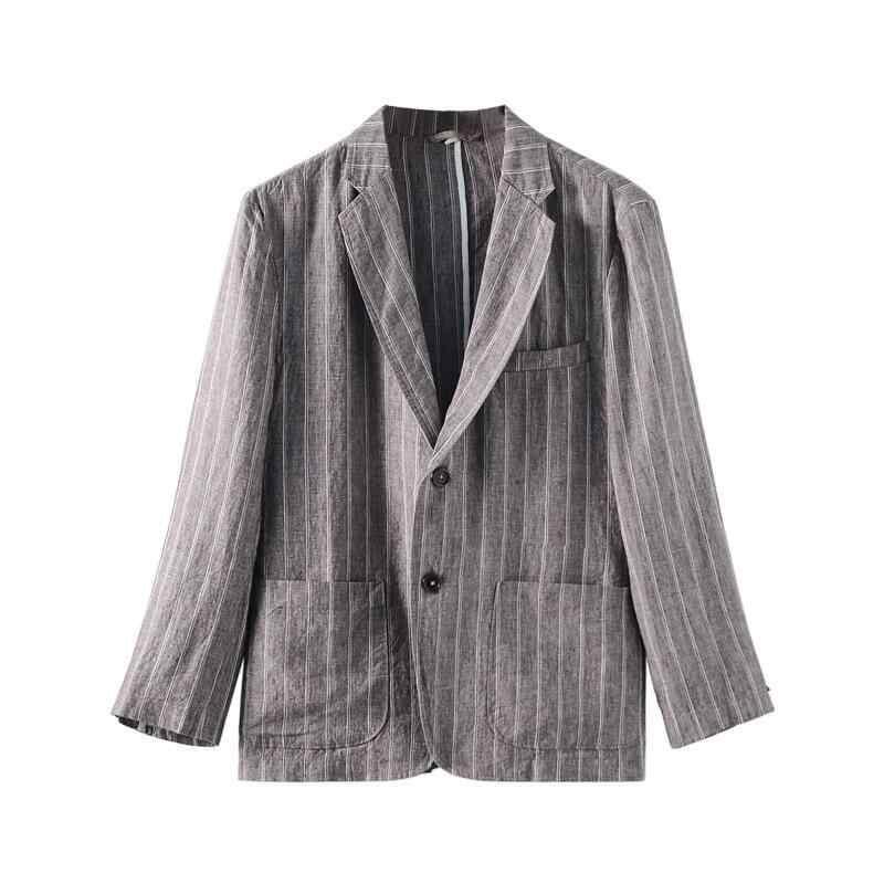 ジャケット メンズ 男性用 リネン 麻素材 ストライプ柄 カジュアル ビジネス 春夏 長袖 ゆったり ライトアウター 通気性抜群 清涼感 シンプル ホワイト ネイビー ブラウン