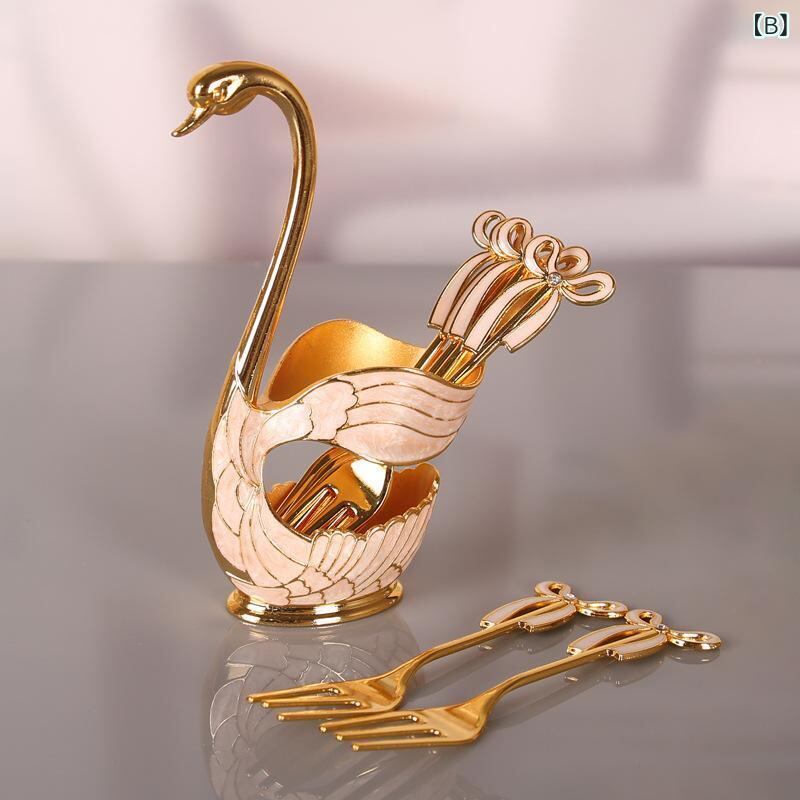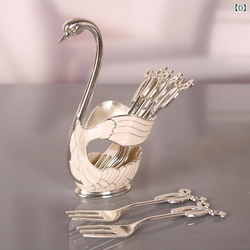 カトラリー 白鳥デザイン ヨーロピアン レトロ デザート ティータイム セット 亜鉛合金製 高級感 エレガント 上品 家庭用 来客用 ゴールド シルバー
