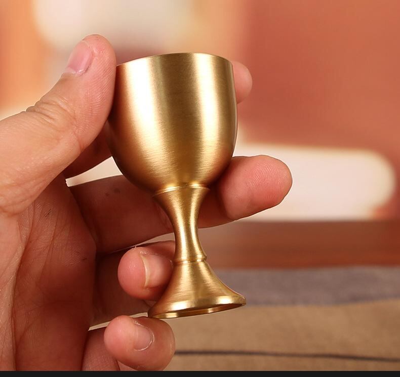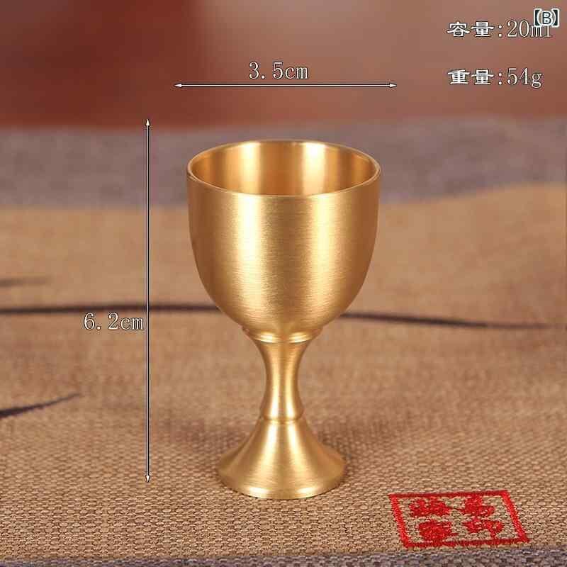 リキュールグラス 真鍮製 脚付き ショット ミニ酒器 古風 レトロ 家庭用 神具 お供え 高級感 光沢仕上げ