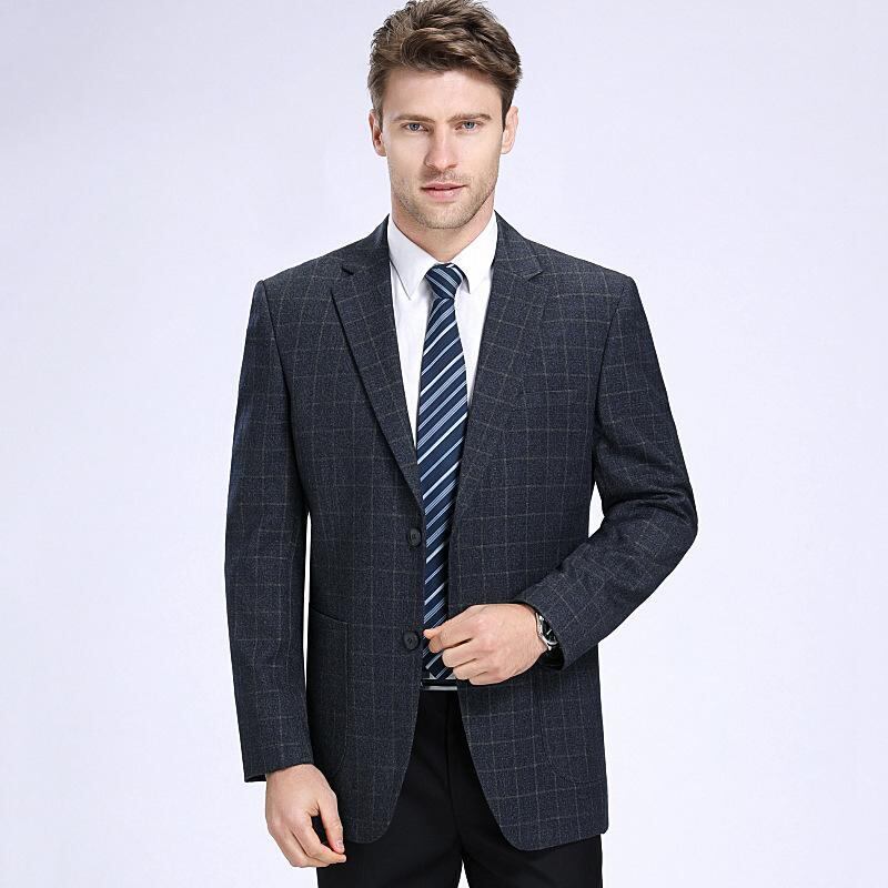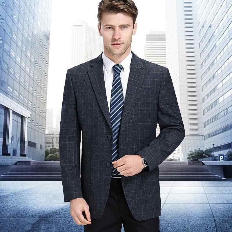 テーラードジャケット メンズ 中年男性向け お父さん 春秋 カジュアル ウォッシャブル 洗濯可能 防シワ加工 ノーアイロン チェック柄 シングルブレスト 2つボタン ウール混 ストレートシルエット