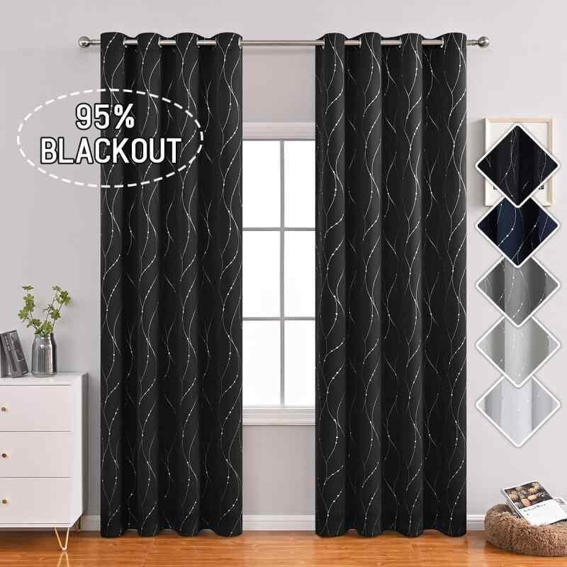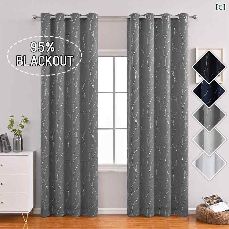 カーテン 高遮光 厚地 箔押し 流星柄 ハトメ式 既製 リビングルーム 居間 寝室 窓用 日よけ UVカット プライバシー保護 ポリエステル モダン シンプル