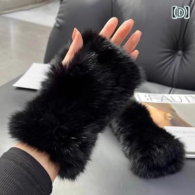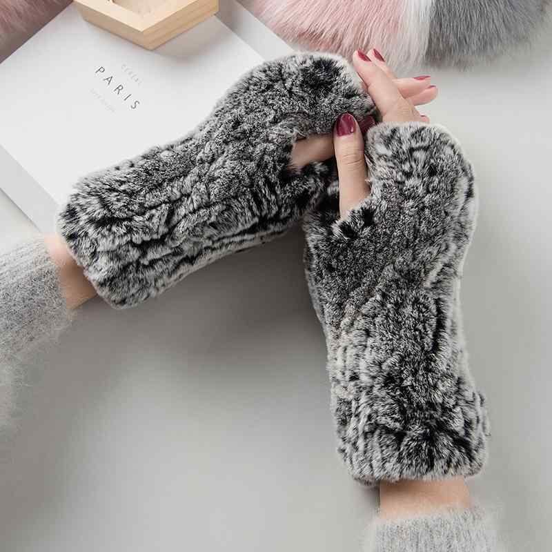 手袋 レディース 女性 学生 秋冬 暖かい あったか 厚手 防寒 グローブ レッキスラビットファー ラビットファー リアルファー ニット 指なし 指あり スマホ対応 PC作業 普段使い 通勤 通学 高級感
