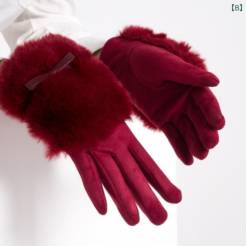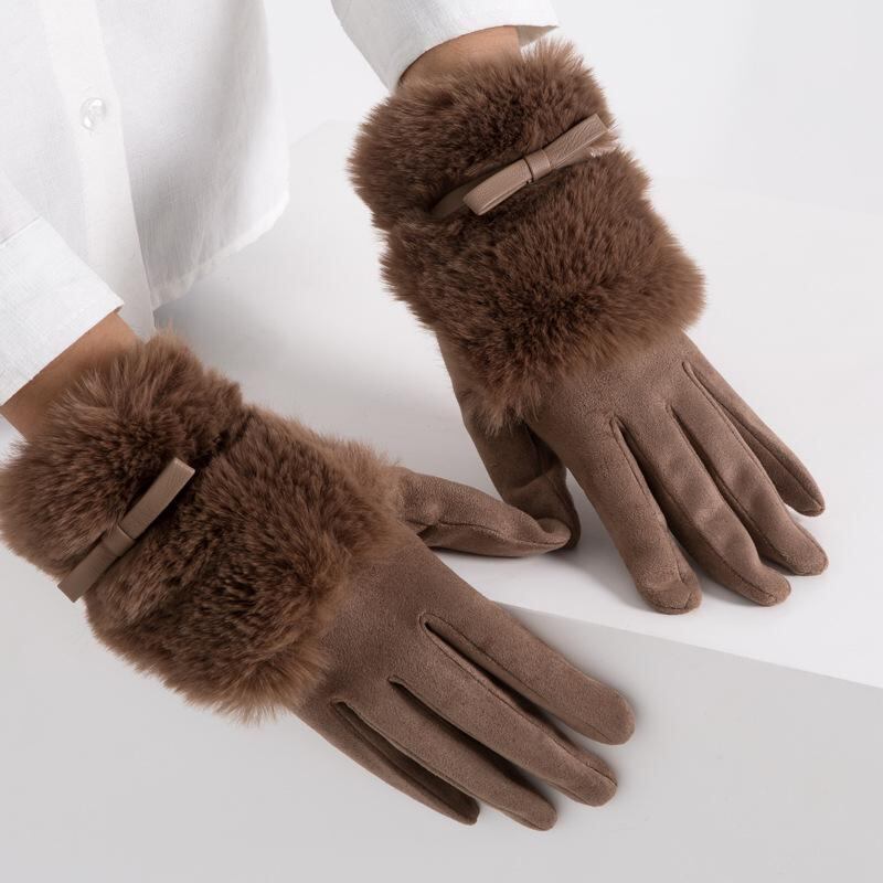手袋 レディース 女性用 韓国風 スエード調 裏起毛 裏ボア 厚手 5本指 タッチスクリーン スマホ対応 冬 防寒 寒さ対策 通勤 通学 サイクリング 普段使い グローブ