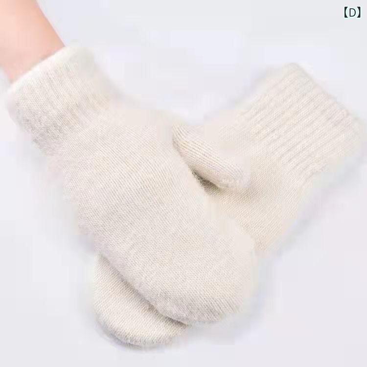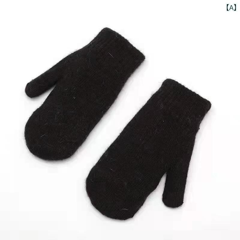 手袋 レディース 冬用 裏起毛 かわいい ガーリー 防寒 ニット ミトン ラビットファー調 厚手 無地 アクリル お出かけ 普段使い 通勤 自転車 バイク グローブ 多色展開