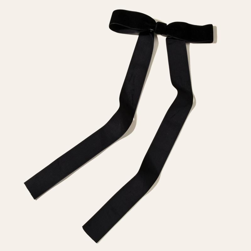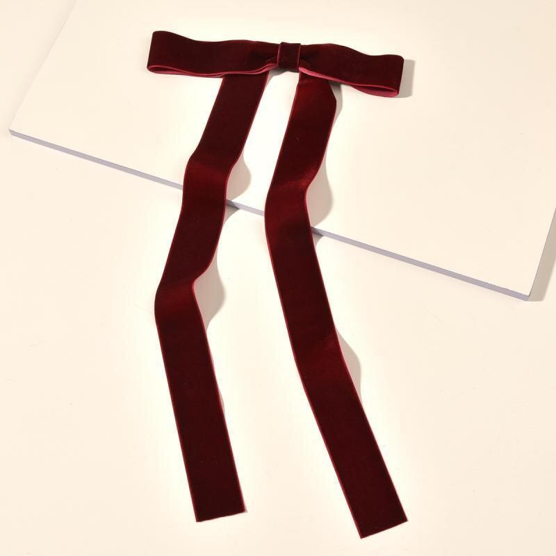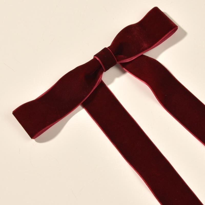ヘアアクセサリー ブライダル ウェディング 結婚式 お呼ばれ パーティー ワインレッド ボルドー ブラック 黒 片面ベルベット ベロア リボン ロング 華やか 上品 エレガント 髪飾り ヘアクリップ バレッタ