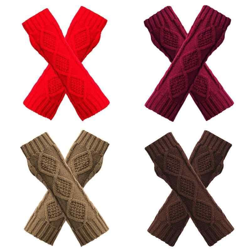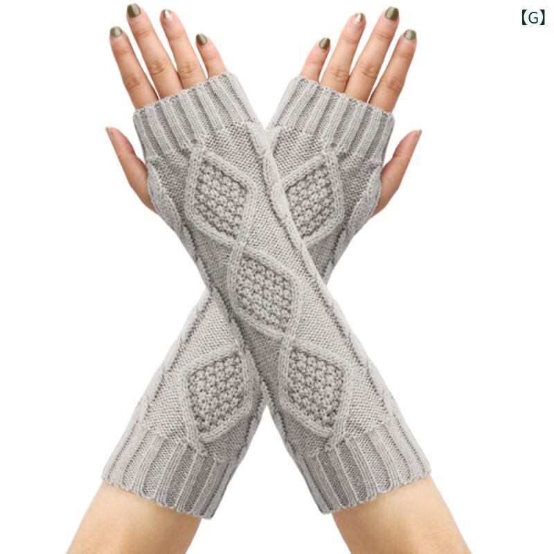 手袋 レディース 指なし ひし形 ニット ロング丈 アームウォーマー アクリル 防寒 保温 レトロ 普段使い カジュアル 秋冬 グローブ