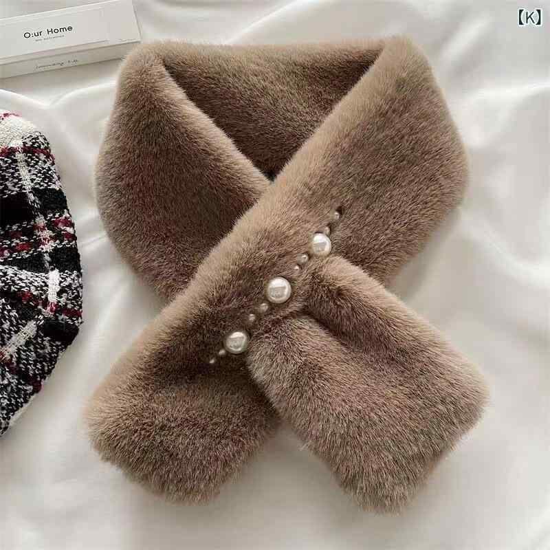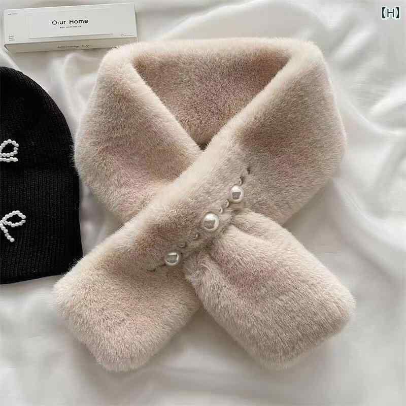 マフラー レディース 韓国風 ふわふわ もこもこ ソフトタッチ ラビットファー調 無地 クロス 差し込み ティペット 保温 暖か 秋冬
