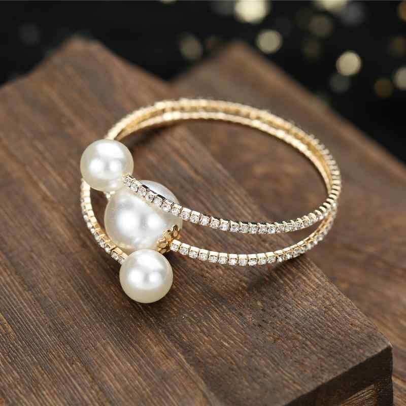 ブレスレット レディース 韓国 ファッション シンプル 多重 ラインストーン パール 伸縮性 普段使い デイリー 重ね付け インフルエンサー トレンド バングル アクセ 個性的 かわいい