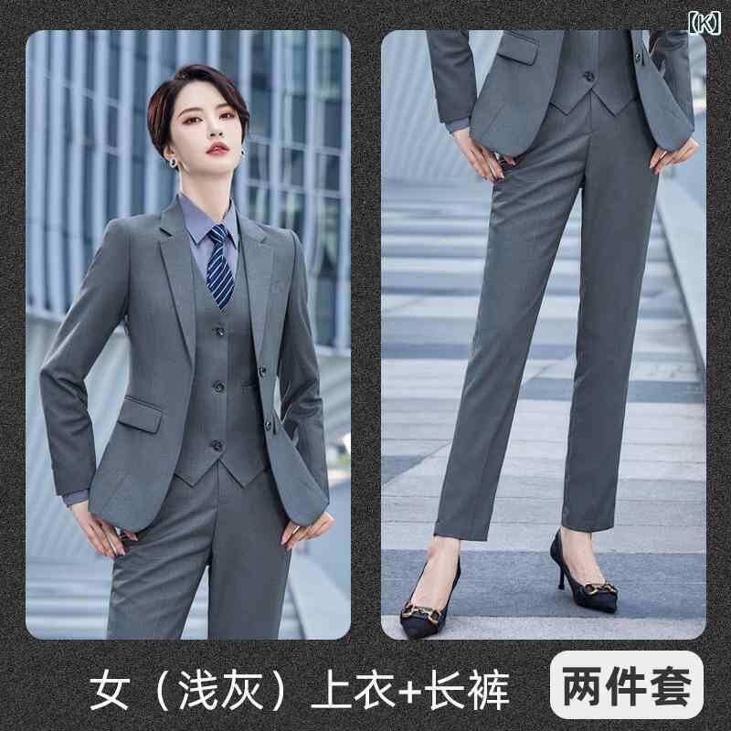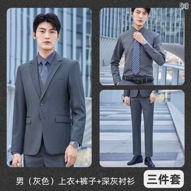スーツ 男女兼用 グレー ビジネススーツ セットアップ ユニフォーム 制服 作業服 ワークウェア ベスト ジレ ポリエステル アセテート スリムフィット テーラードカラー 2つボタン オールシーズン 不動産 教師 管理職 オフィス 通勤 接客
