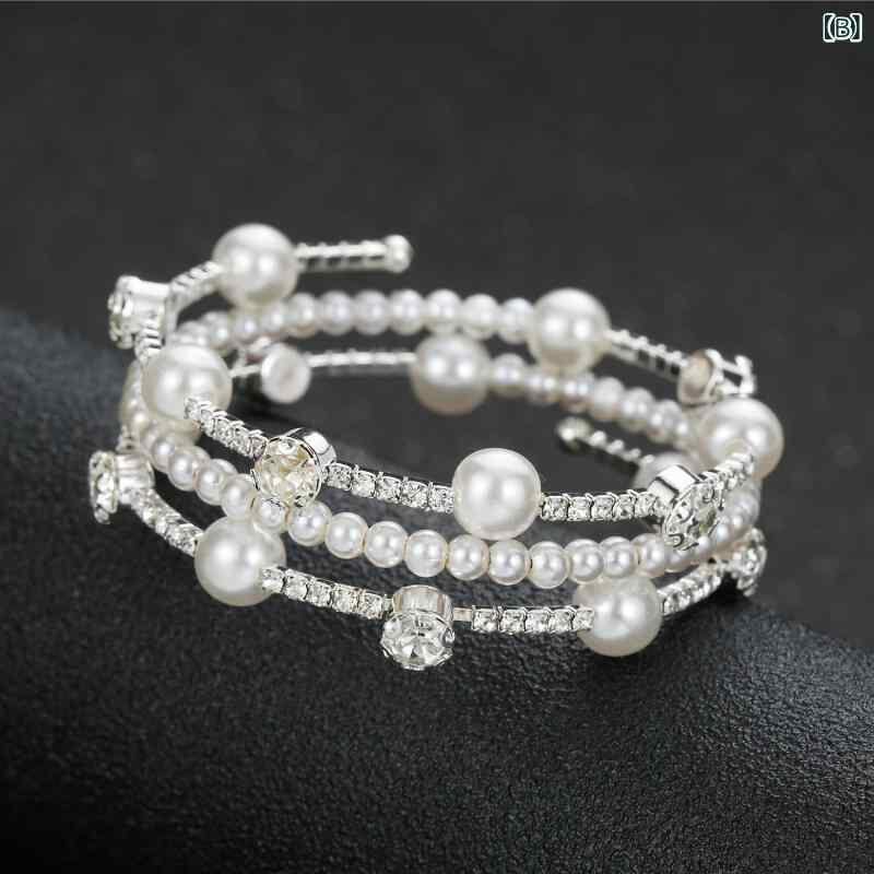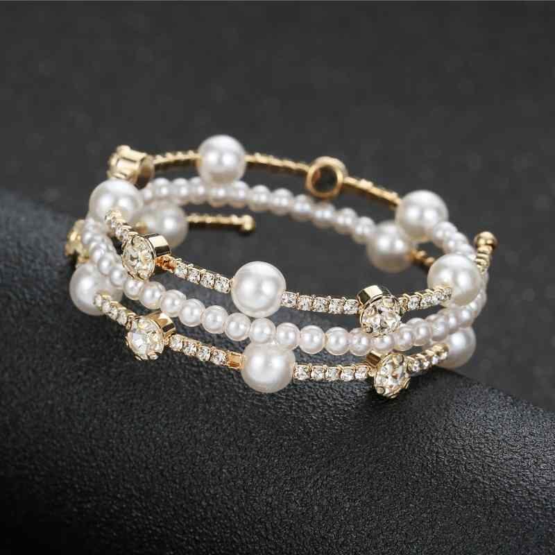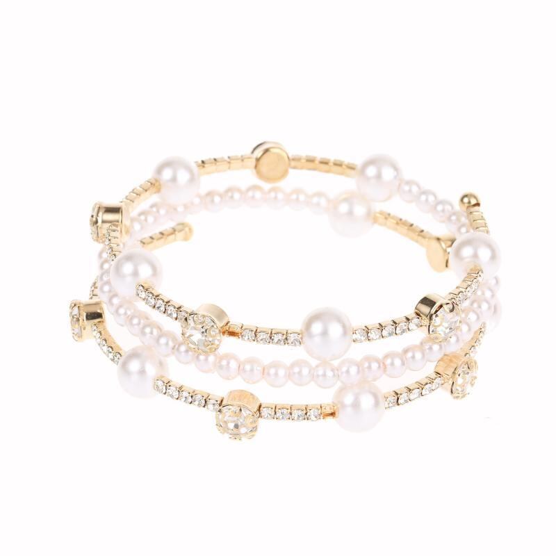 ブレスレット レディース 多層 オープンカフ ラインストーン エスニック ボヘミアン カジュアル デイリー 普段使い 万能 伸縮性 ゴールド シルバー 合金