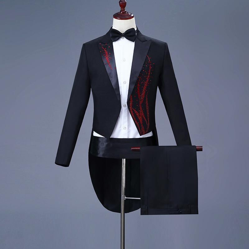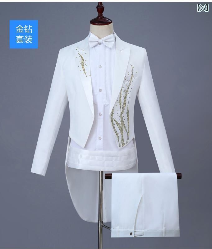 タキシード メンズ 男性用 海藻風 カラーラインストーン ステージ衣装 演奏会 発表会 舞台 マジシャン 声楽家 指揮者 フォーマル 礼装 タキシード セットアップ
