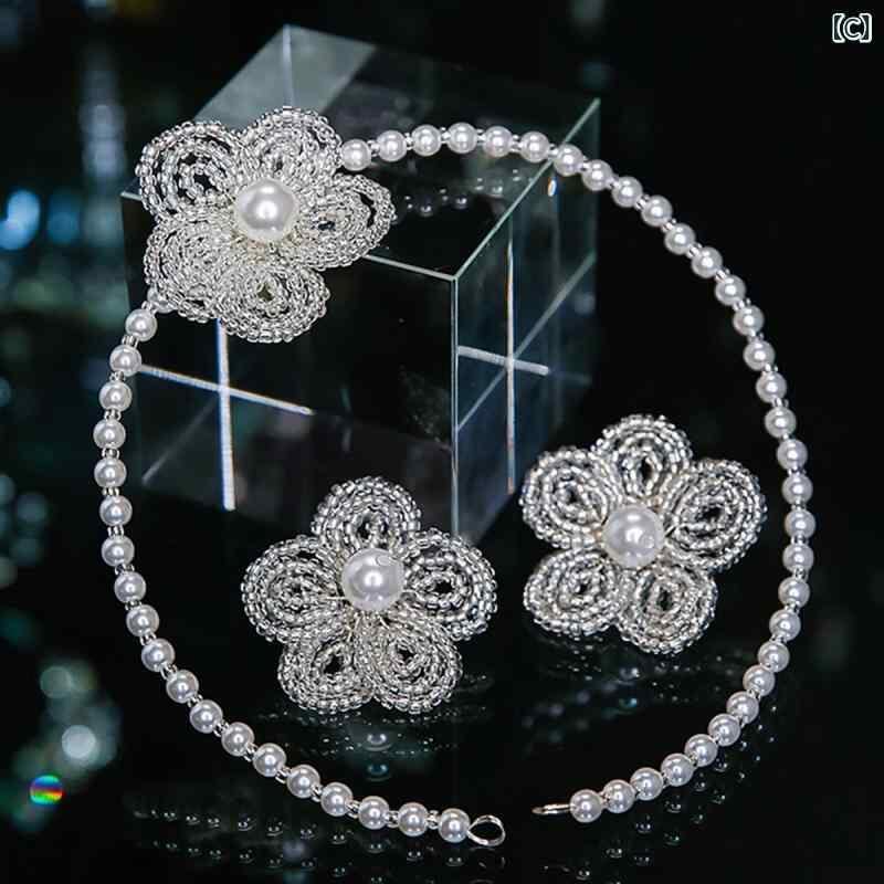 ヘッドドレス 花嫁 髪飾り 韓国風 ブライダル ウェディング 結婚式 クリスタル パール パール フラワー カチューシャ ゴージャス 豪華 上品 華やか