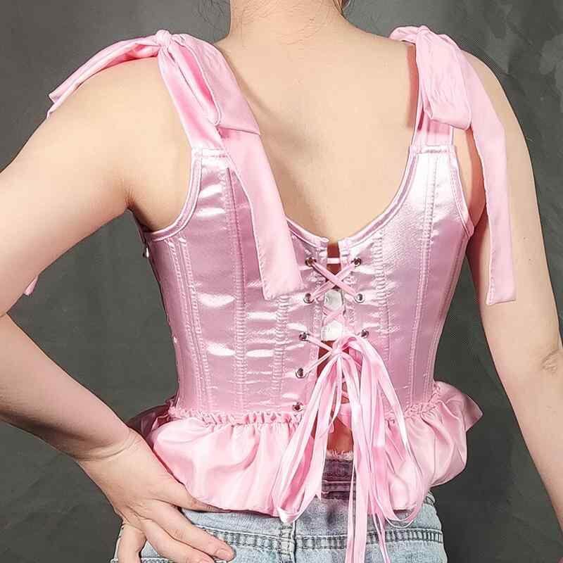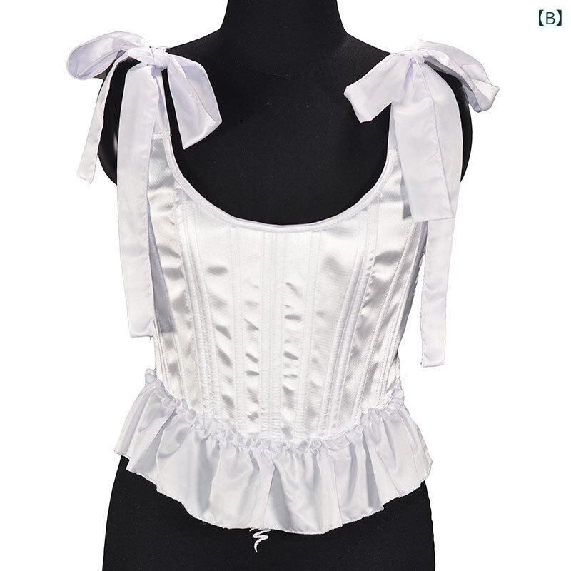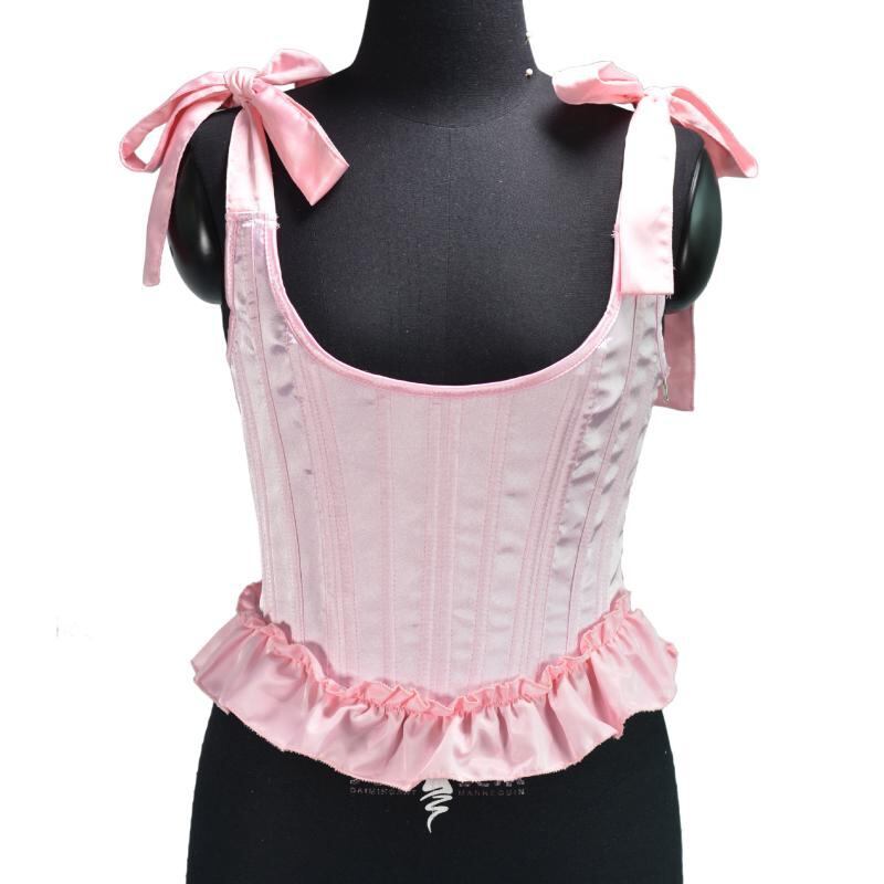 ビスチェ レディース ボーン入り コルセット キャミソール ウエストシェイプ リボン 肩紐 フリル サイドジップ スタイルアップ ボディメイク 補正 ポリエステル 黒 白 ピンク