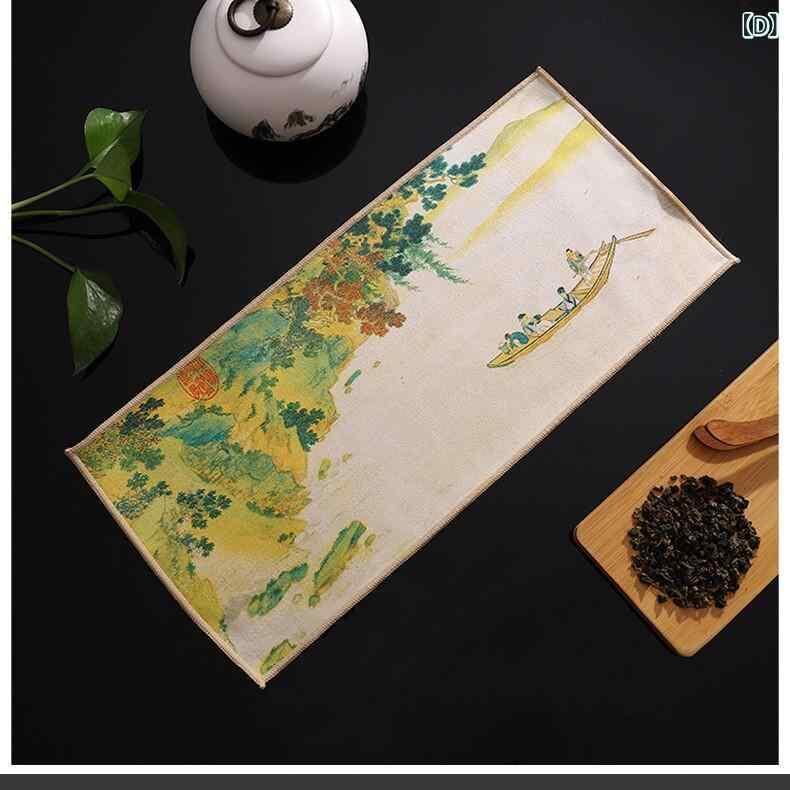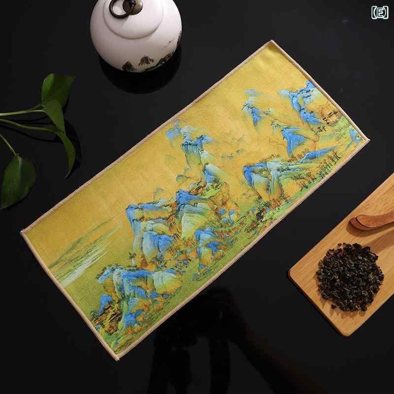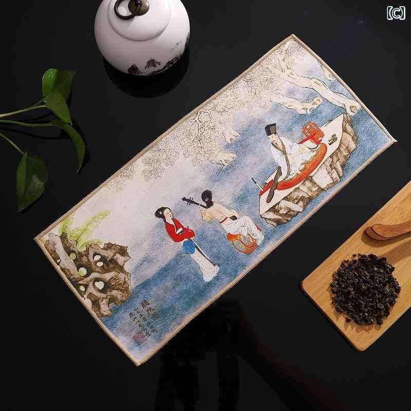 茶巾 スエード調 茶道用 厚手 吸水性 速乾 多機能 高級感 中国風 古風 彩色絵画 手描き絵柄 お点前 お茶席 テーブルウェア