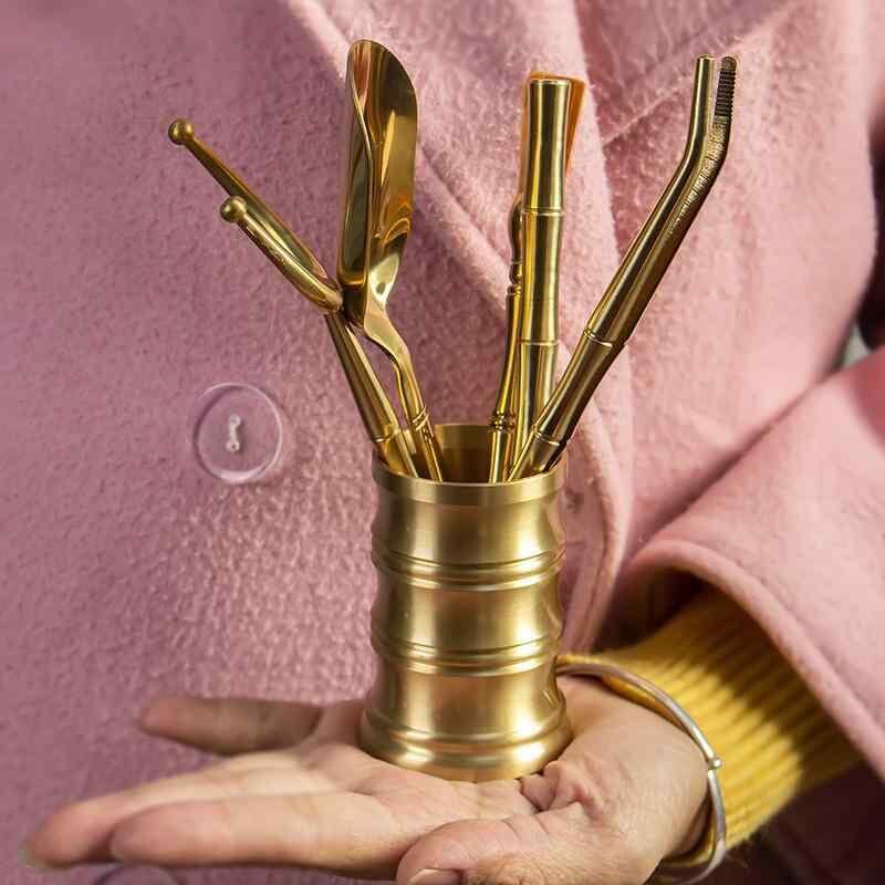 茶道具 真鍮製 六君子 6点セット 功夫茶器 中国茶器 和風茶道 喫茶道具 お茶淹れツール 茶洗 茶挟 茶匙 茶刀 本格 おもてなし 上品