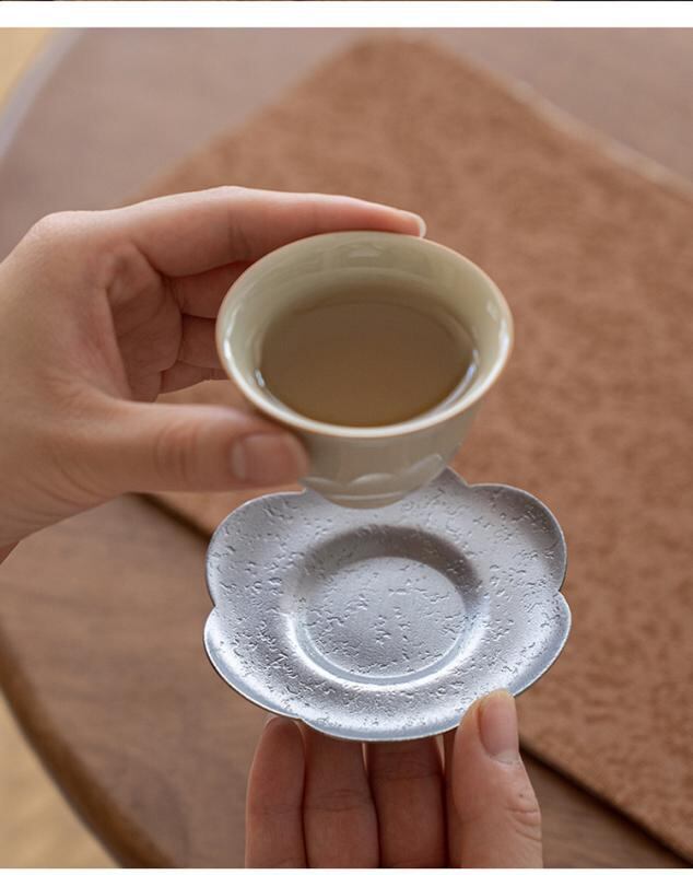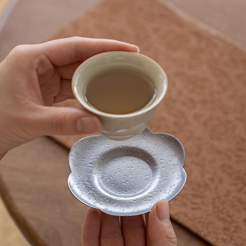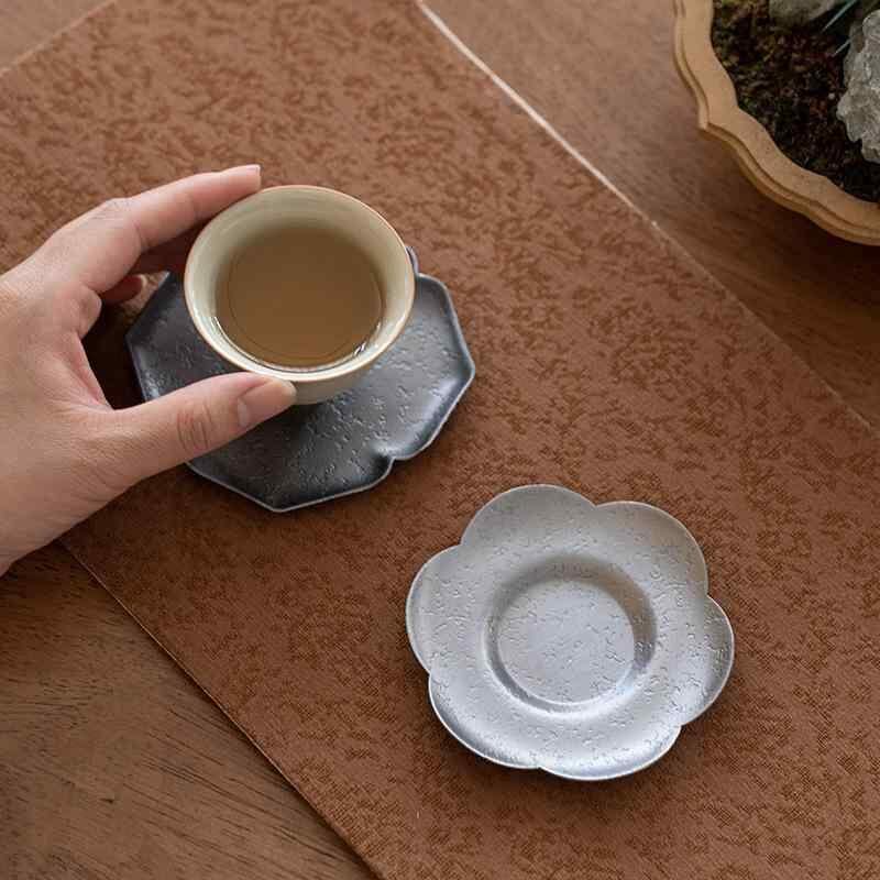 コースター 錫製 ピューター 小サイズ 茶托 茶器 功夫茶具用 断熱 隔熱 スクエア 四角 祥雲柄 新中華風 モダンチャイニーズ 和モダン おしゃれ 高級感 来客用 お茶会 インテリア