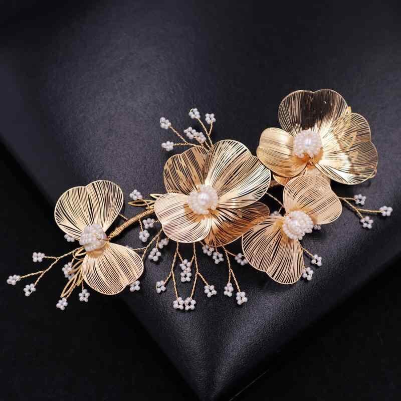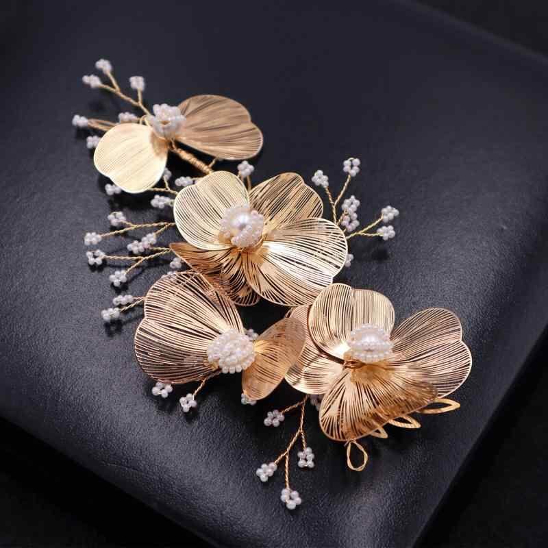 髪飾り レディース 女性用 ヘッドドレス イヤリング ピアス セット ゴールド パール フラワーモチーフ 華やか エレガント 結婚式 ブライダル ウェディング 花嫁 披露宴 二次会 パーティー フォーマル