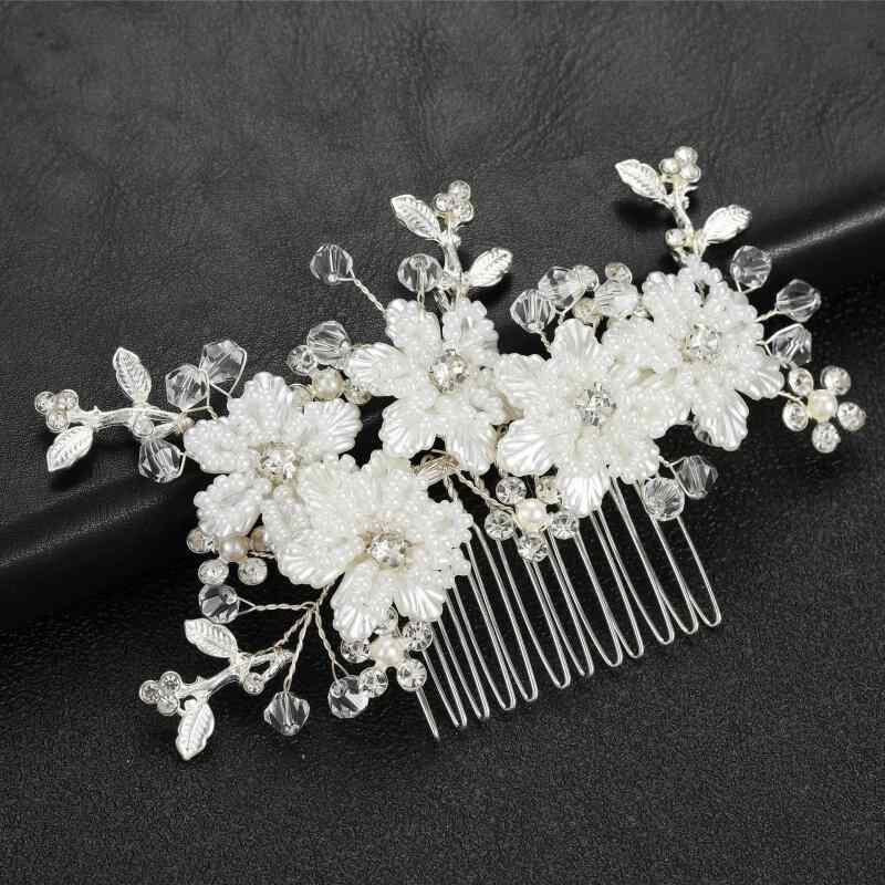 髪飾り レディース 花嫁 新婦 ウェディング ブライダル ヘアコーム 挿し櫛 サイドコーム ホワイト フラワー 花 小粒パール パール ビーズ