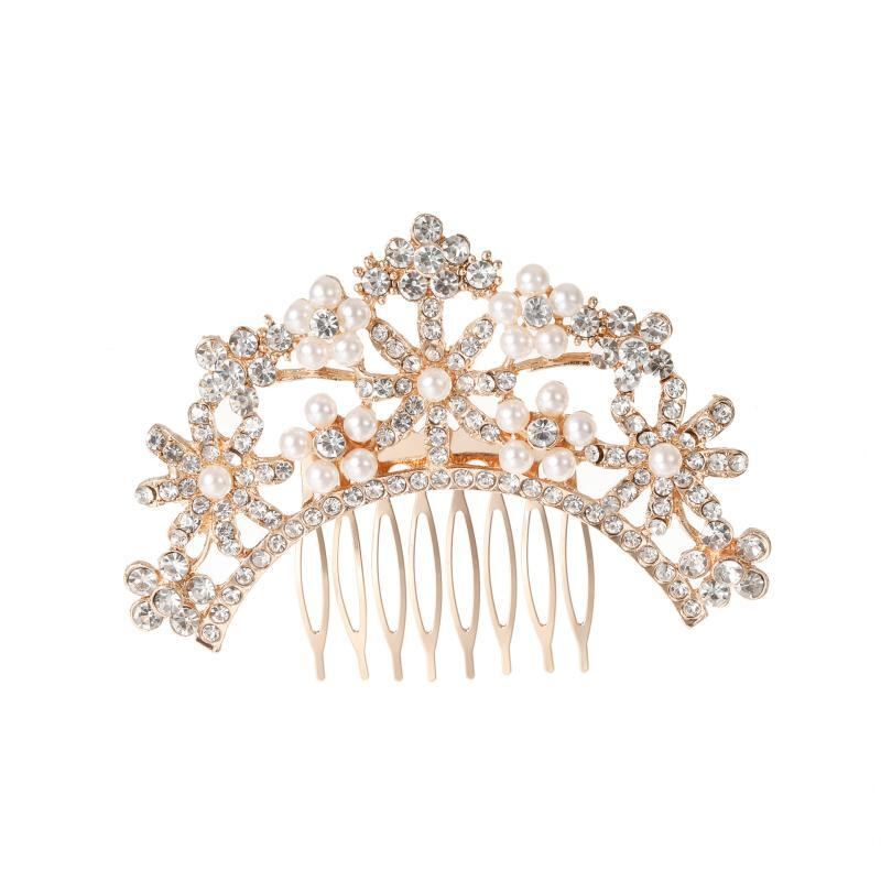 ヘッドドレス レディース 花嫁 ウェディング ブライダル 結婚式 披露宴 二次会 パーティー フォーマル イベント アクセサリー 髪飾り ヘアコーム 合金 パール パール ジルコニア ラインストーン ゴールド 金 エレガント 上品 華やか 豪華 高級感 韓