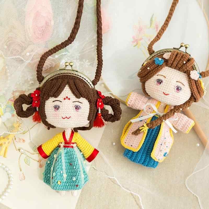 手芸キット 子供 キッズ レトロ クラシック がま口バッグ ミニポーチ ぬいぐるみ 人形 ハンドメイド かぎ針編み クロシェ 毛糸 綿素材 中華風デザイン