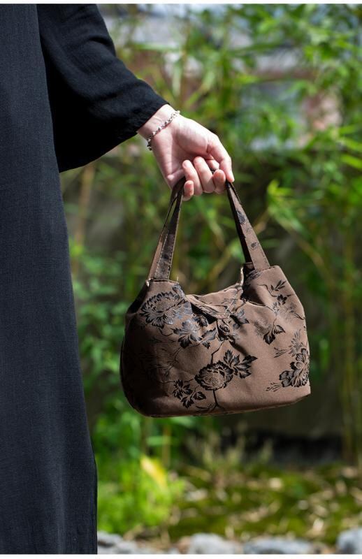 収納バッグ 茶道具 茶器 ポータブル 和風デザイン 小花柄 綿麻布製 手提げ アウトドア 旅行用 お茶会 ピクニック 小物入れ ポーチ 軽量 おしゃれ ナチュラルカラー 整理袋