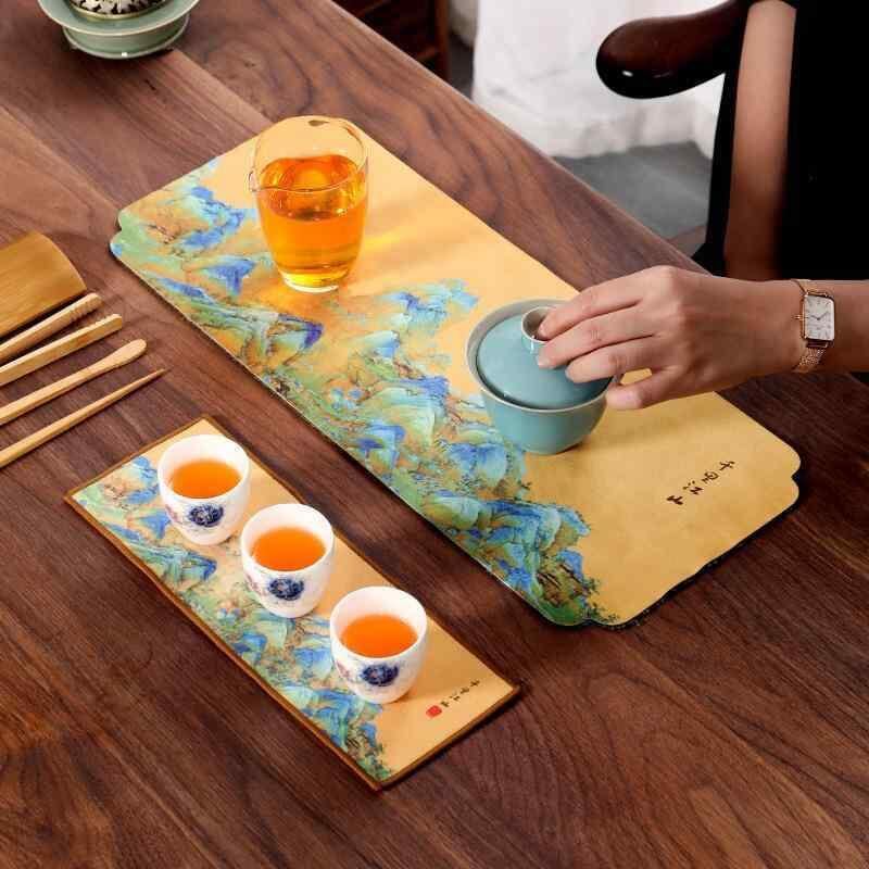 茶席 新中国風 チャイナモダン 乾泡用 茶巾マット 厚手 断熱 保温 布製 中国茶器 功夫茶具 茶壺 茶盤 敷物