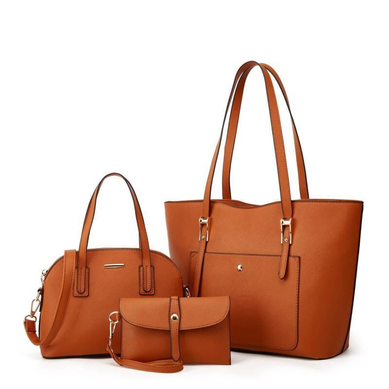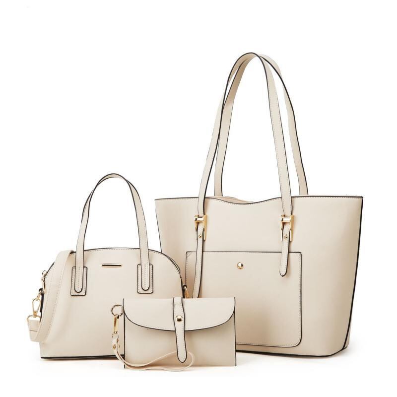 鞄 レディース 親子3点セット ショルダー トート PUレザー 横型 スクエア型 ソフト 普段使い 通勤 お出かけ シンプル きれいめ ファスナー付き ダークブラウン ホワイト ブラック ピンク
