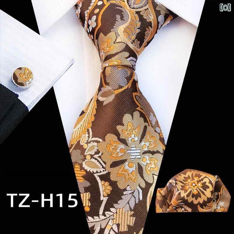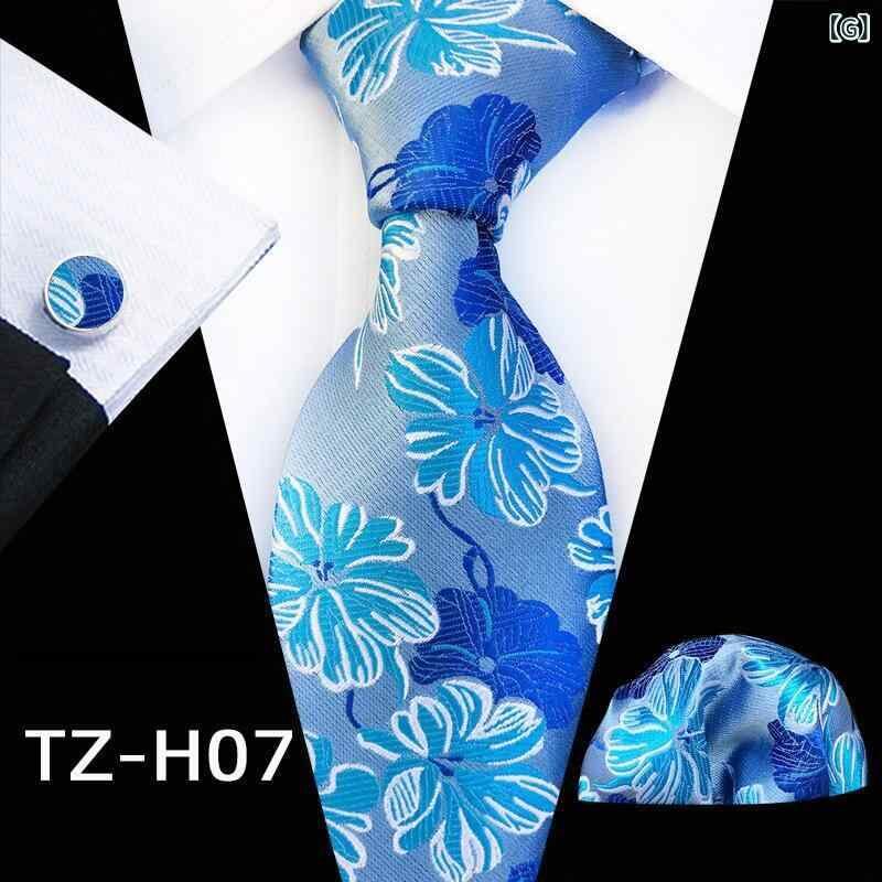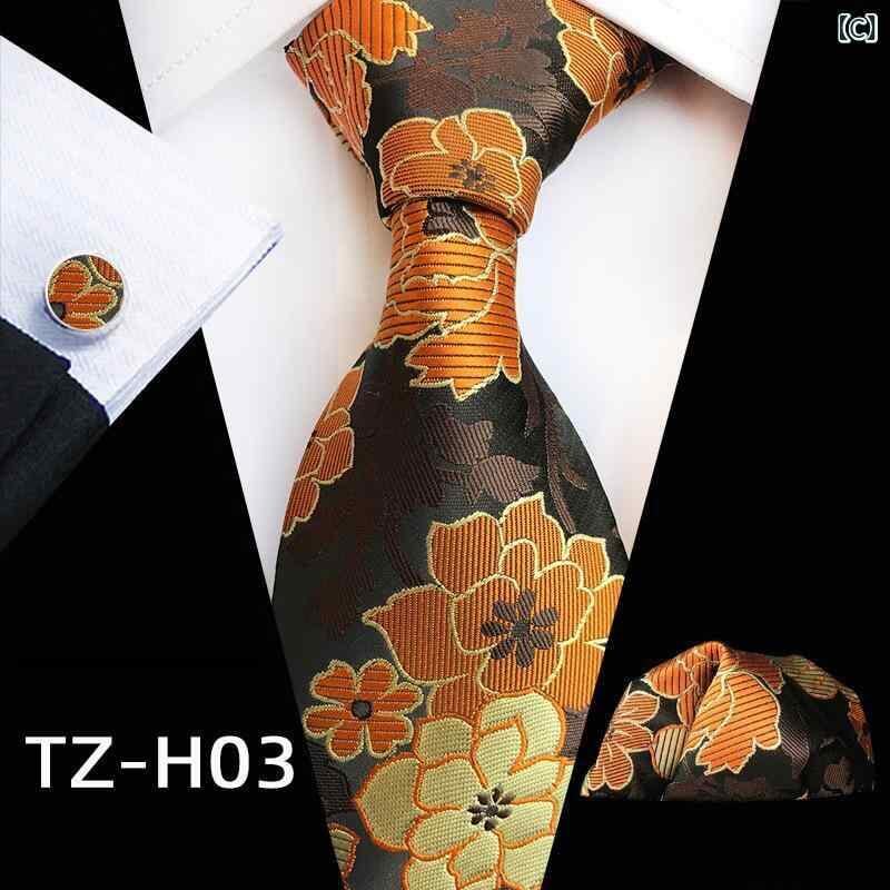 ネクタイ メンズ 手結び ポケットチーフ カフス 3点セット レトロ クラシック フォーマル ビジネス 結婚式 新郎 花柄 ポリエステル 高密度生地 春夏