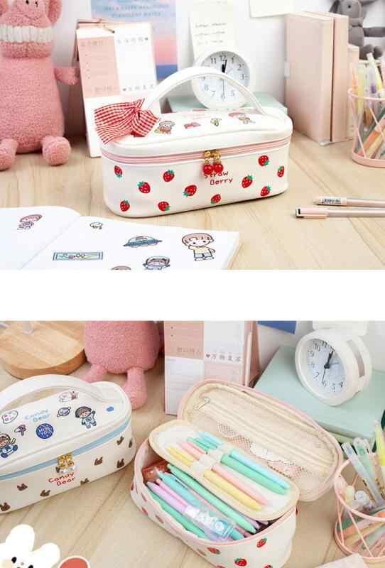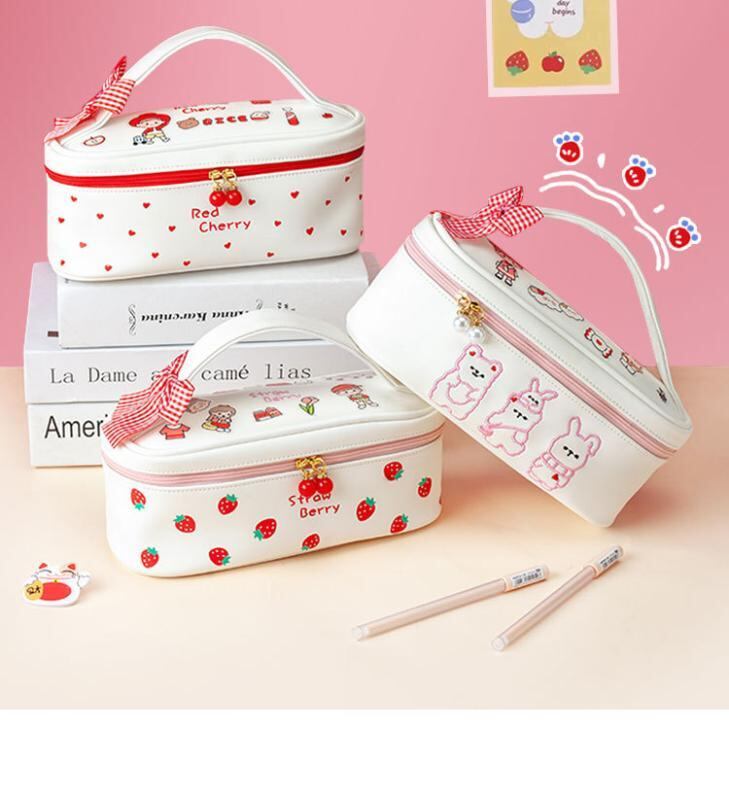 筆箱 女の子 小中学生 ペンケース かわいい キャラクターデザイン おしゃれ 大容量 多機能 収納 文房具 通学 合皮 筆入れ いちご柄 ハート柄 くま柄 整理整頓