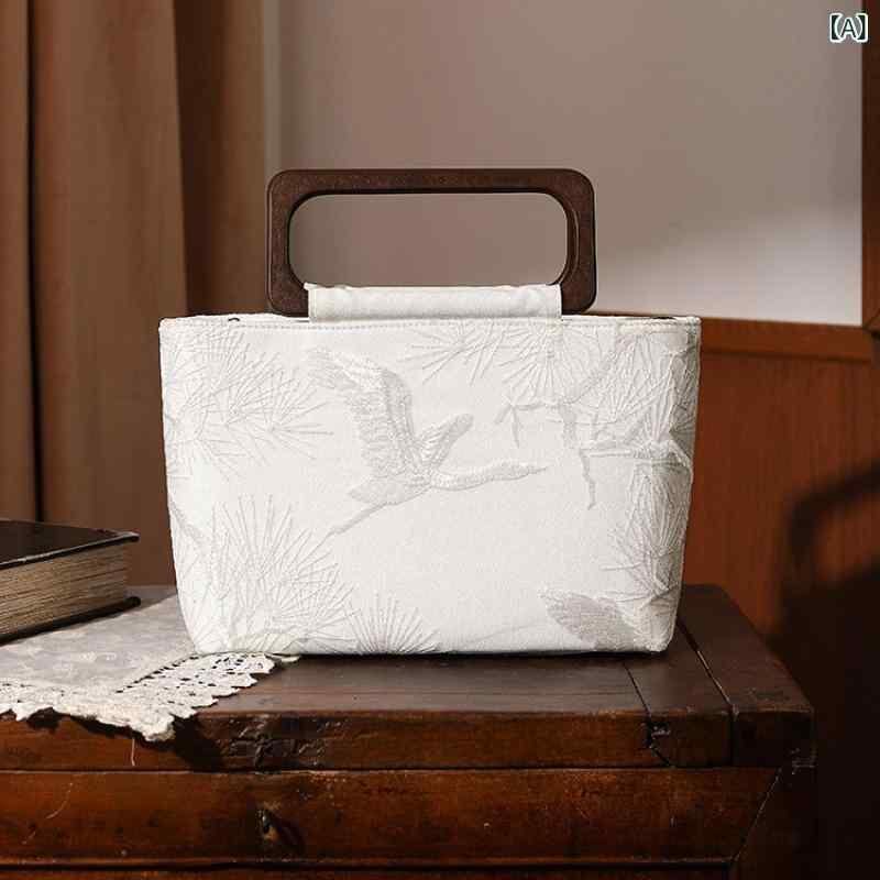 ["・カラー: 鶴仙人","・スタイル: 文芸国風","・主な素材: ポリエステル","・バッグスタイル: 竹節バッグ","・バッグサイズ: 中","・人気要素: レース、刺繍、花","・裏地素材: ポリエステル","・バッグ形状: 横型四角","・開閉方式: ファスナー","・内部構造: 証件ポケット","・硬度: 中","・外ポケット: オープンポケット","・適用シーン: 日常使い"]