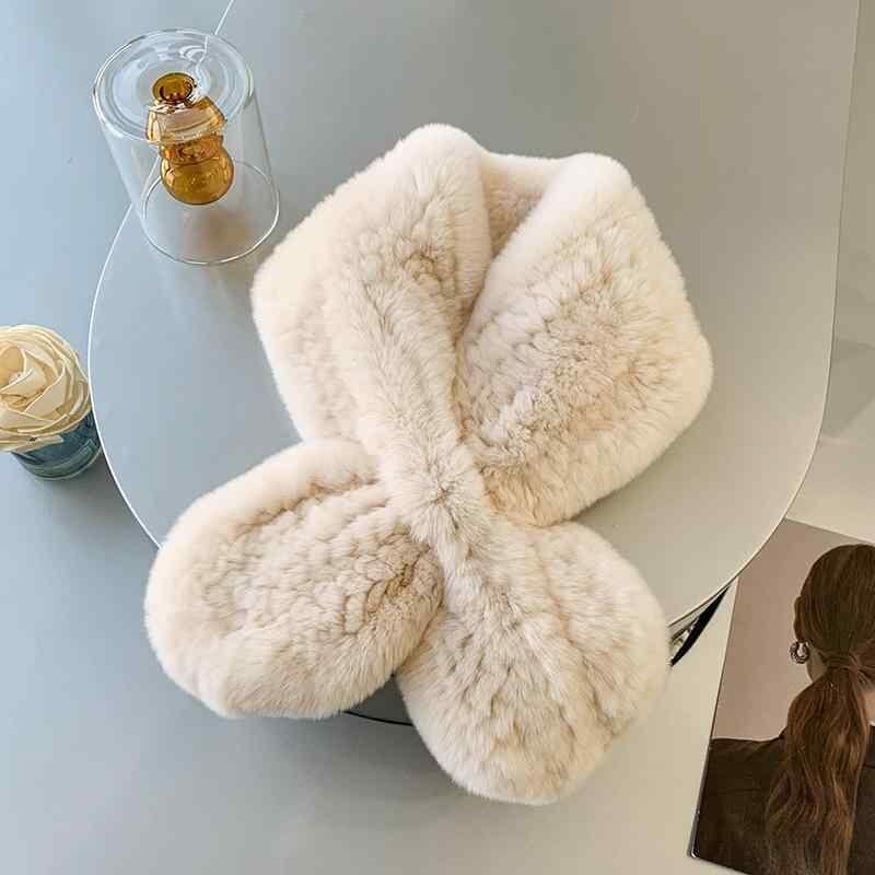 マフラー レディース レッキスラビット 編み込み ショート丈 差し込み式 ネックウォーマー ボウタイ リボン エレガント 上品 秋冬 防寒 保温