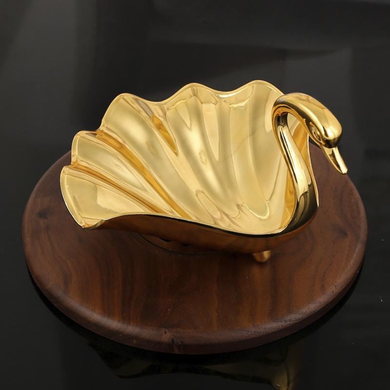 トレー 北欧スタイル リビング フルーツ皿 果物皿 お菓子 スナック 変形 金属製 ゴールド クジャクデザイン 上品 モダン シンプル オブジェ 飾り 電気メッキ加工