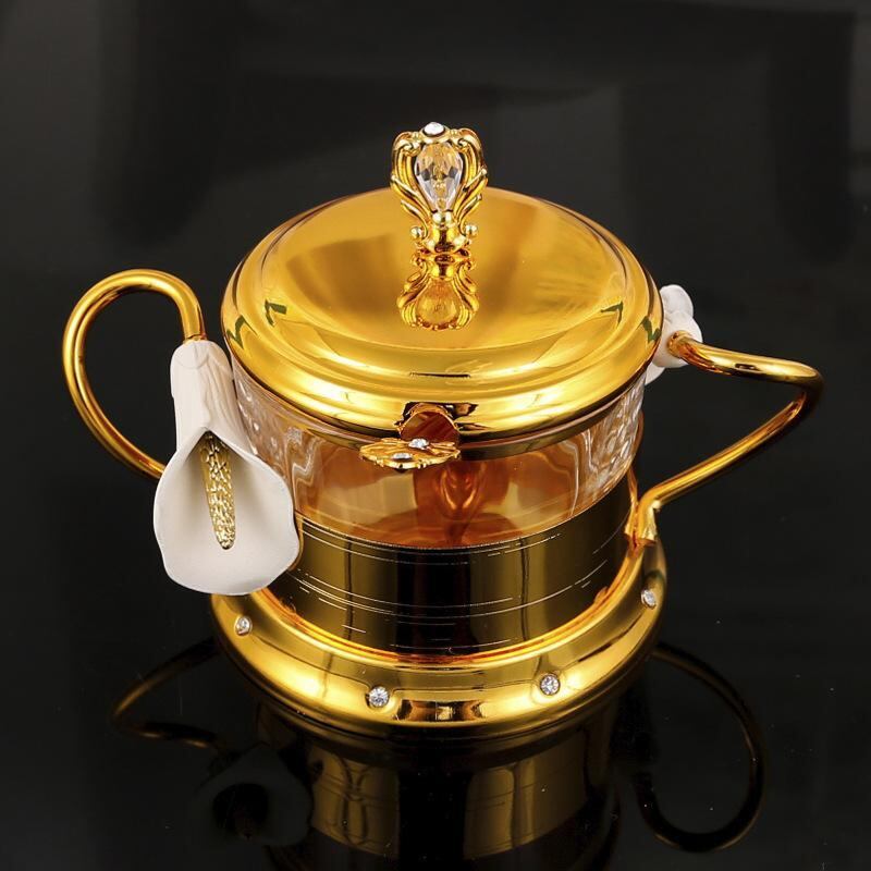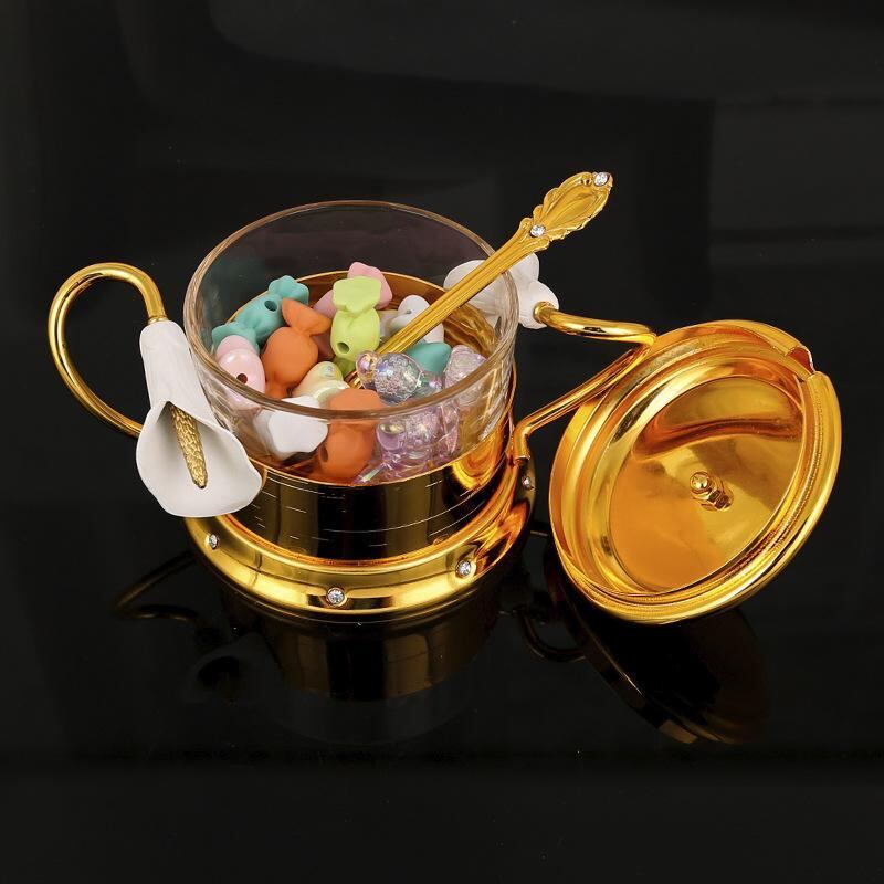 調味料入れ 北欧風 カラーリリー 高級感 おしゃれ 卓上 ポット 砂糖 塩 スパイス 固形調味料 キャニスター キッチン収納 保存容器 ゴールド