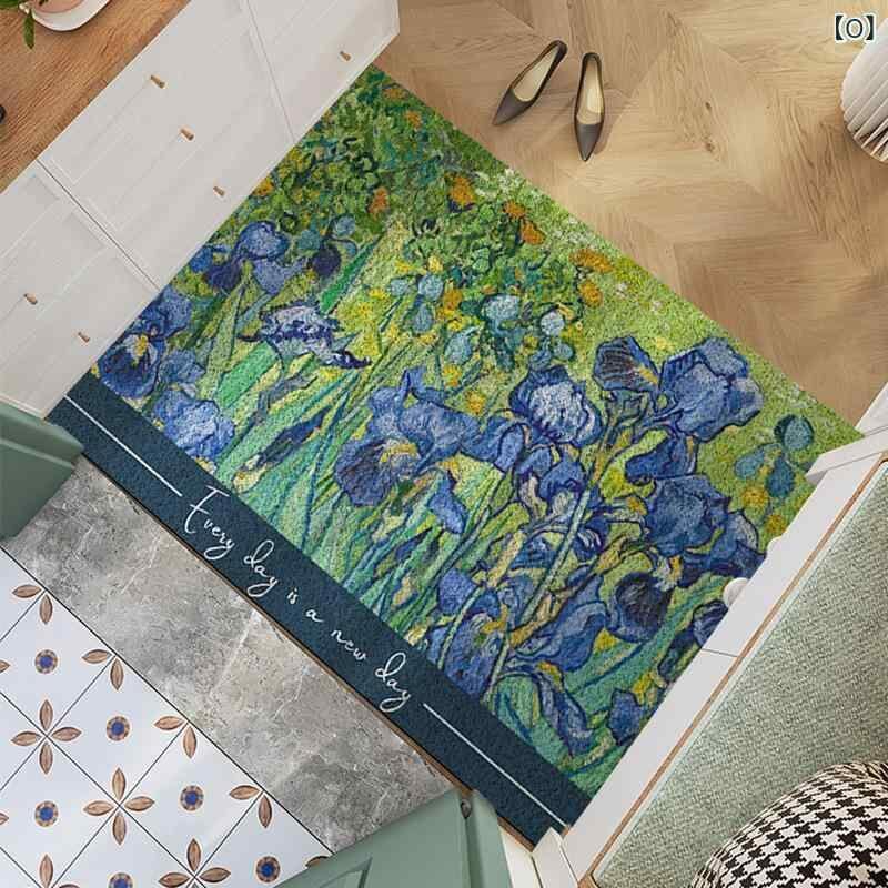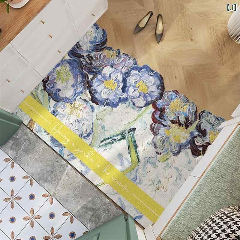 玄関マット PVC製 洗える フリーカット コイル状 屋内用 エントランス 泥落とし 汚れ防止 おしゃれ モダン ボタニカル 花柄デザイン ベランダ バルコニー 室内 滑り止め加工