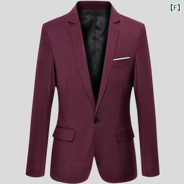 テーラードジャケット メンズ スリムフィット シングルボタン 1つボタン 細身 カジュアル ビジネス オフィス ビジカジ 韓国風 春秋 ポリエステル シワになりにくい