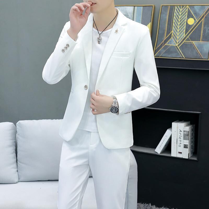 セットアップ メンズ 男性用 スリムフィット 薄手 テーラードジャケット ブリティッシュスタイル カジュアル ビジネス オフィス 普段使い ポリエステル 洗える シングルボタン 白 黒 灰 ピンク 水色